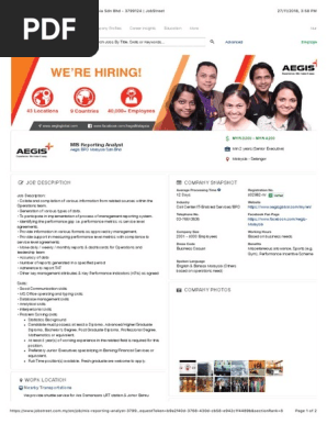 Mis Reporting Analyst Job Aegis Bpo Malaysia Sdn Bhd 3799124 Jobstreet Pdf Outsourcing Employment